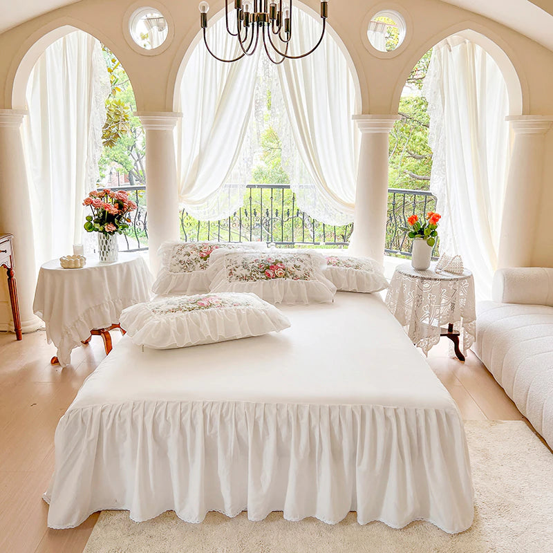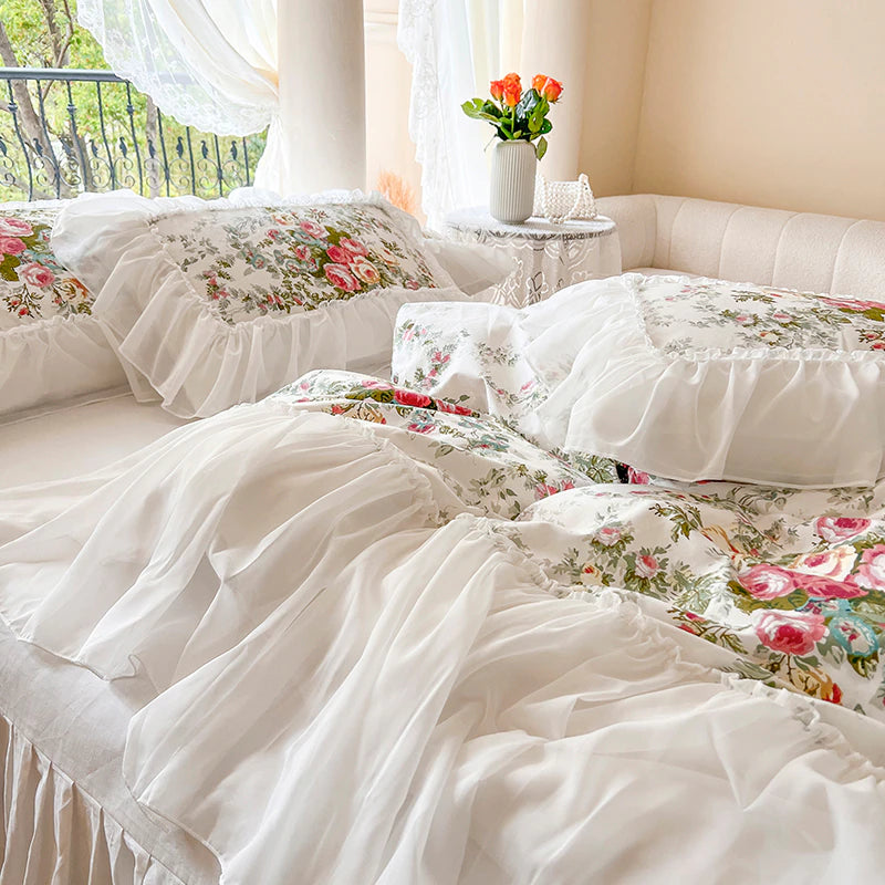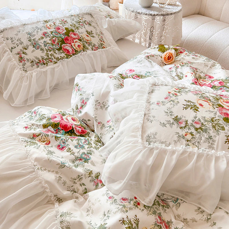 Luxury White Lace Princess Style Cotton Duvet Cover Bedding Set With Pillow Covers