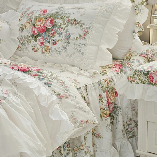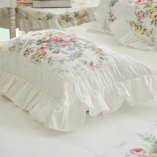 Add an elegant touch to your bedroom with our Luxury White Lace Princess Flowers Cotton Lace Ruffles Duvet Cover Bedding Set. Made with high-quality cotton, this set features delicate lace and ruffled accents for a romantic and sophisticated look. Includes pillow covers for a complete set.