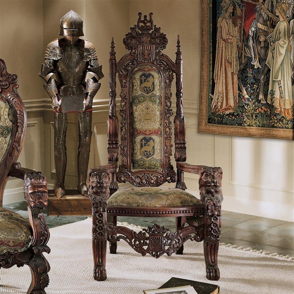 You've come to expect the unexpected from us, and so we've purposely outdone ourselves by combing the Gothic castles of Europe to bring you this exquisite Medieval antique replica throne chair!