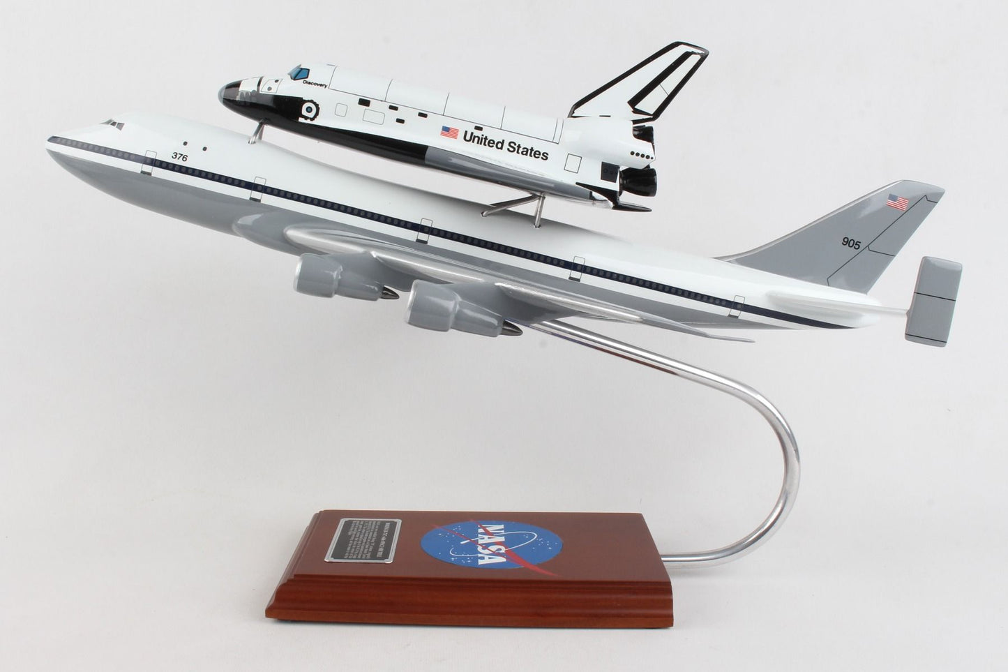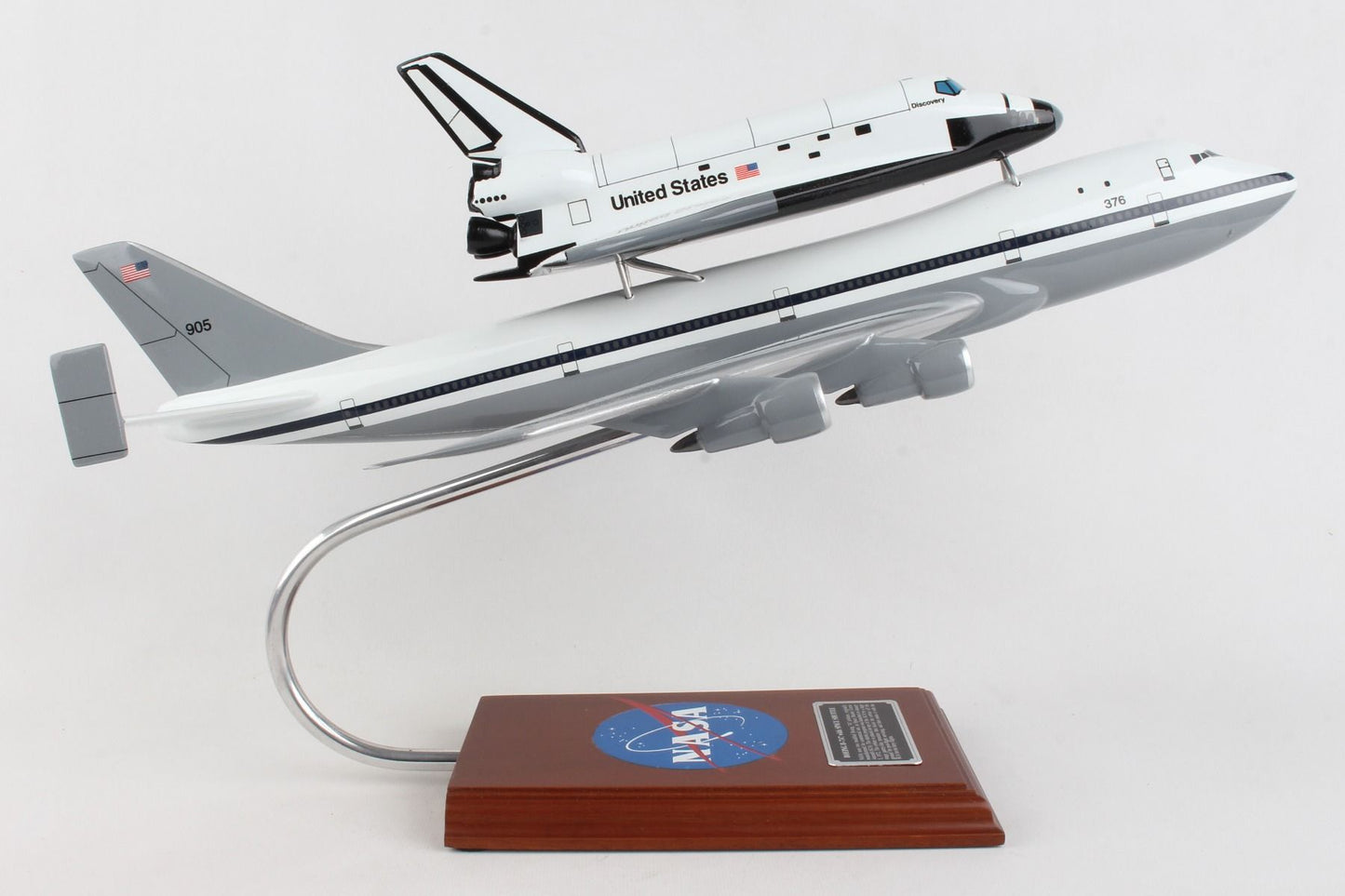 NASA Airplane Boeing 747 With Space Orbiter Shuttle Discovery Large Wood Model with NASA Logo Aircraft