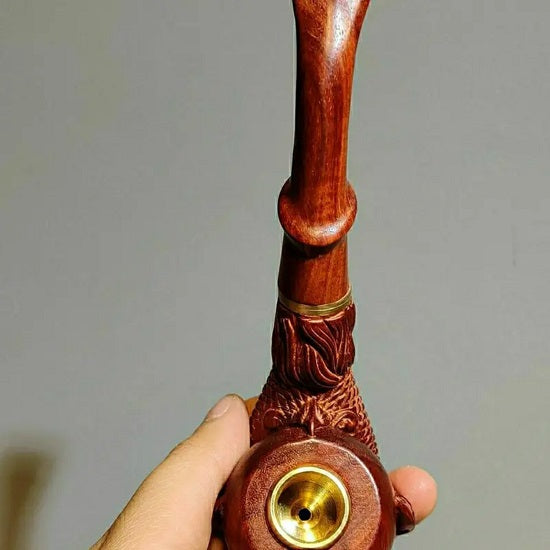 Expertly crafted from solid rosewood, this pipe showcases exquisite hand-carved dragon claw designs that highlight its elegant artistry. The meticulous detailing and premium material ensure a distinguished smoking experience, making it an exceptional choice for collectors and aficionados who value both form and function.