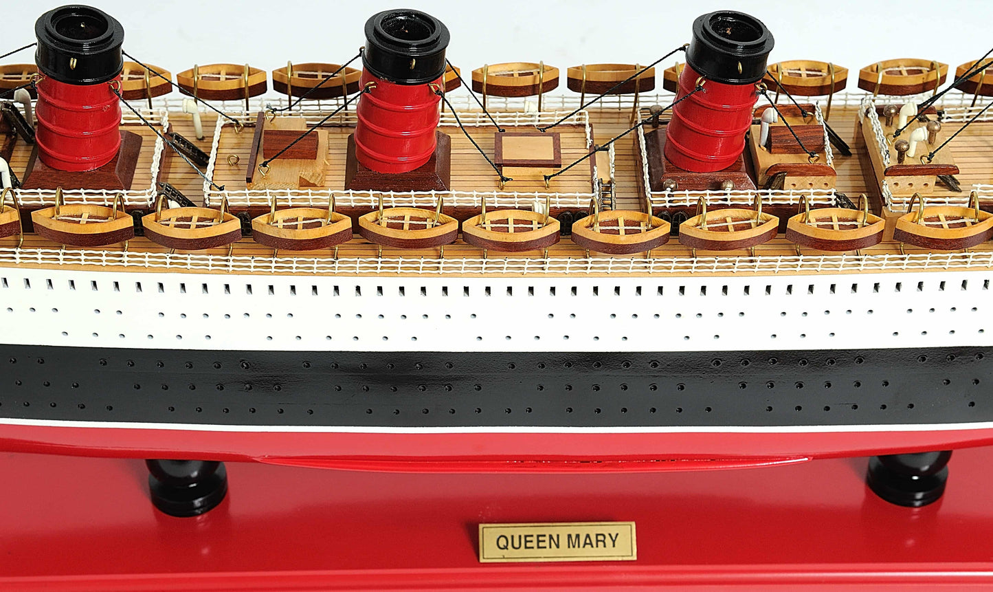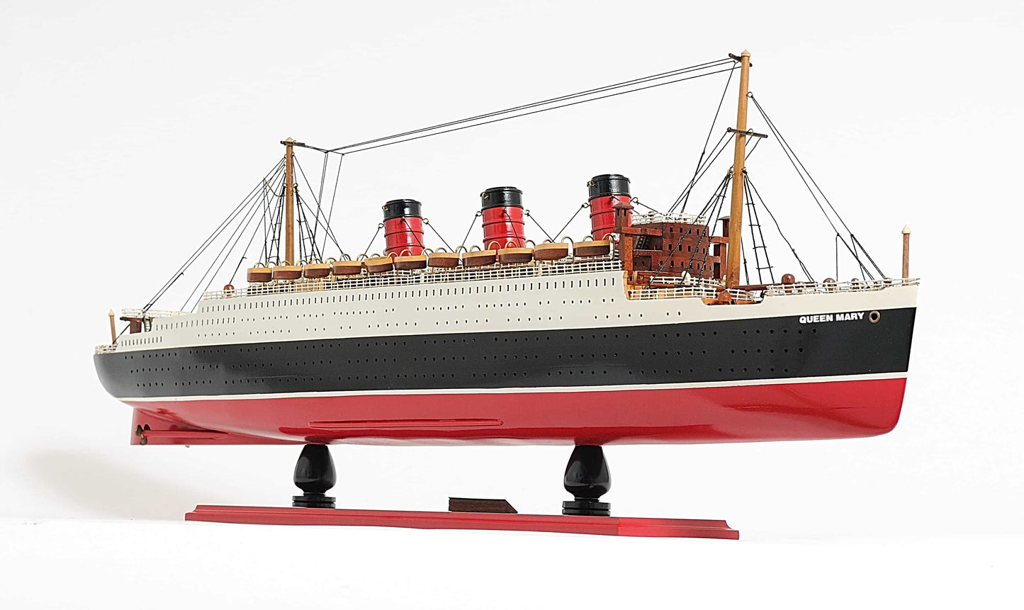 Queen Mary British Flagship Star Painted Passenger Ship Ocean Liner Large Wood Model Assembled