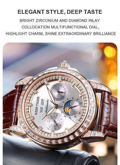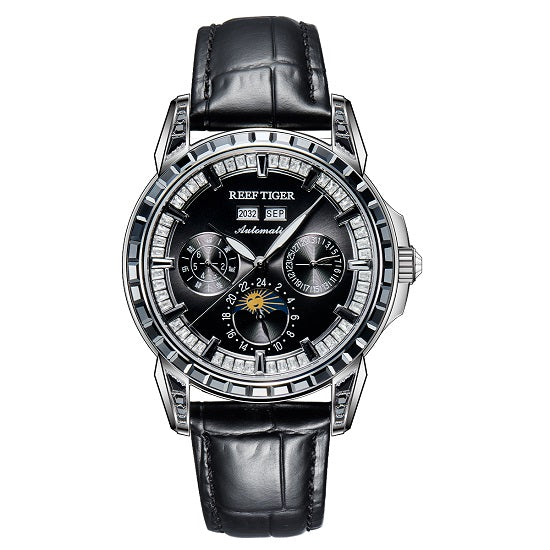 Rainbow Daytona World Collections Unique Design Golden Diamond Bezel Multifunctional Sapphire Glass Leather Luminous 50 Meters Waterproof Automatic Watch For Men by Reef Tiger