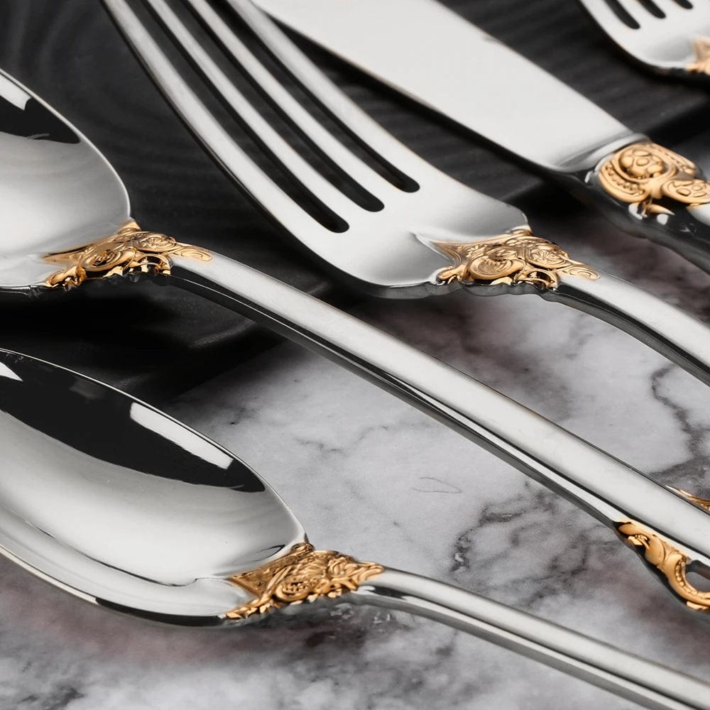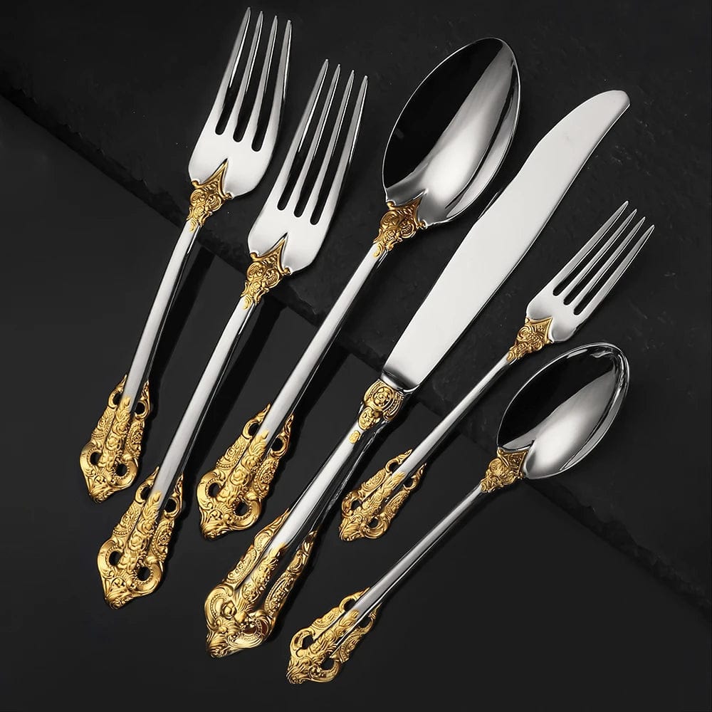 Royal Baroque Hollow Vintage Gold and silver Plated Stainless Steel Cutlery Flatware Sets
