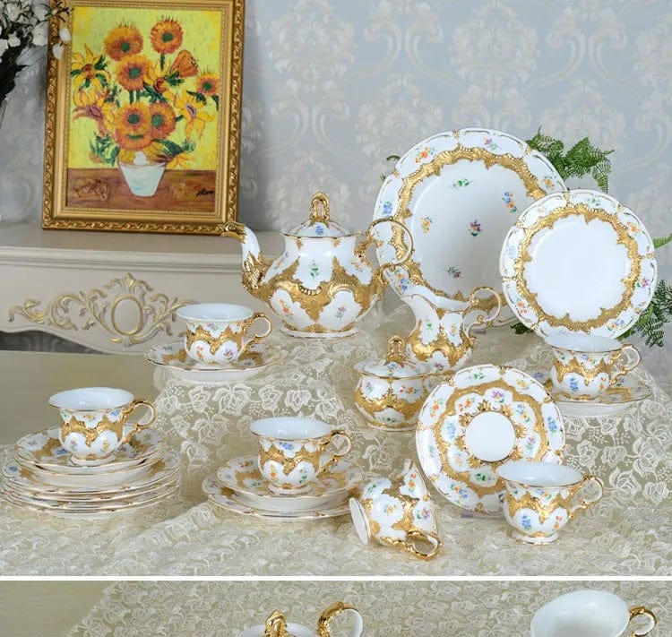 Royal Cort Luxury Style Fine Porcelain 24 K Gold Plated Gold and White Coffee Tea sets