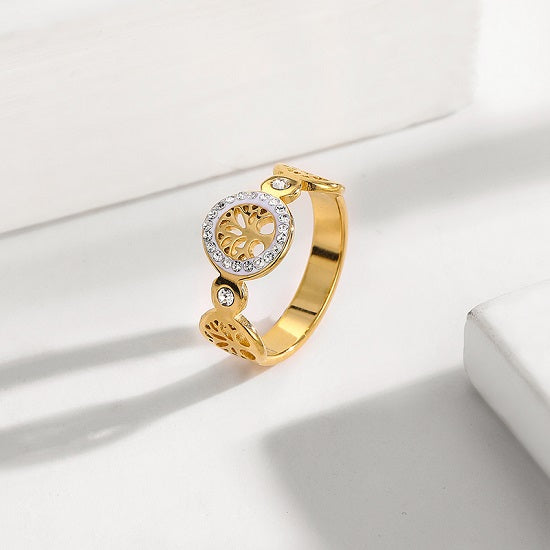 Tree of Life Gold Plated Rings with Lab Diamonds For Women