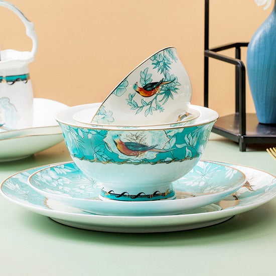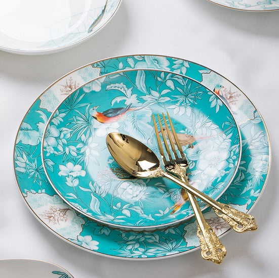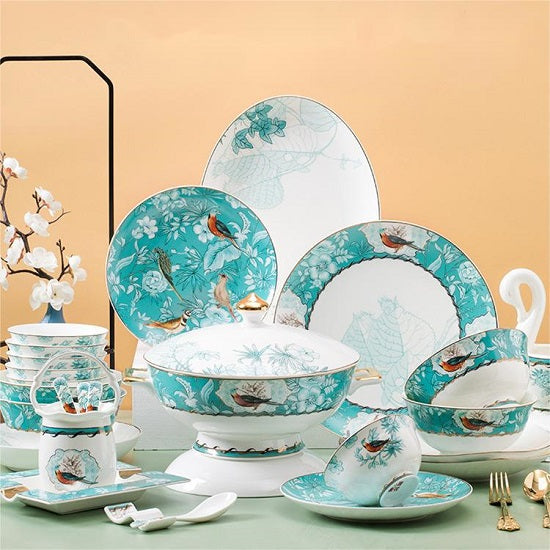 Ultimate Luxury Guci Style Royal Imperial Art Spring Garden Design Fine Porcelain Bone China 70 Pies Dinner Sets