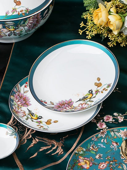 Ultimate Upscale Luxury Guci Style Blue Garden Fine Porcelain Bone China 72 Pies Dinner Sets