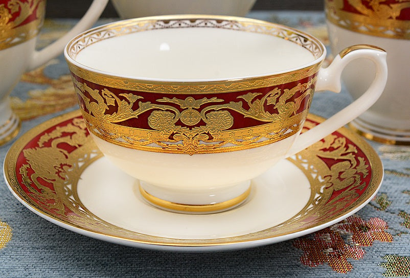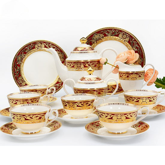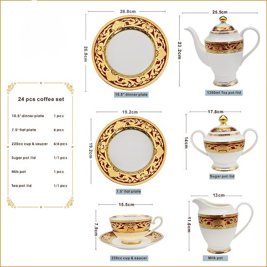 Indulge in luxury with our Ultra Luxury Versace Style Royal Imperial Art Design Gold Plated Fine Porcelain Bone China 24 Pieces Coffee Tea Set. Elevate your dining experience with exquisite craftsmanship and stunning design. Made with the finest materials, this set offers unmatched elegance and quality.