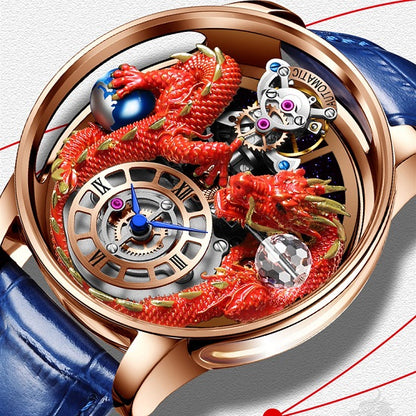 The Dragon Celestial watch by Pindu combines advanced sports quartz movement with durability and style. Featuring a 3D body diamond design, this men's watch offers a striking celestial aesthetic. Its mineral tempered glass ensures scratch resistance, while the luminous hands provide easy readability in low light. Water-resistant construction adds practical protection, making it a reliable companion for active lifestyles. This timepiece expertly blends robustness and elegance for those who demand both performance and distinctive design.