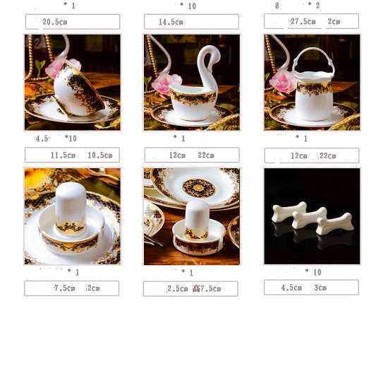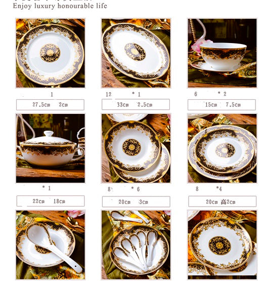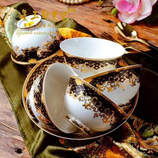 Upscale Luxury Guci Style Gold Plated Fine Porcelain Bone China 60 Pies Dinner Sets