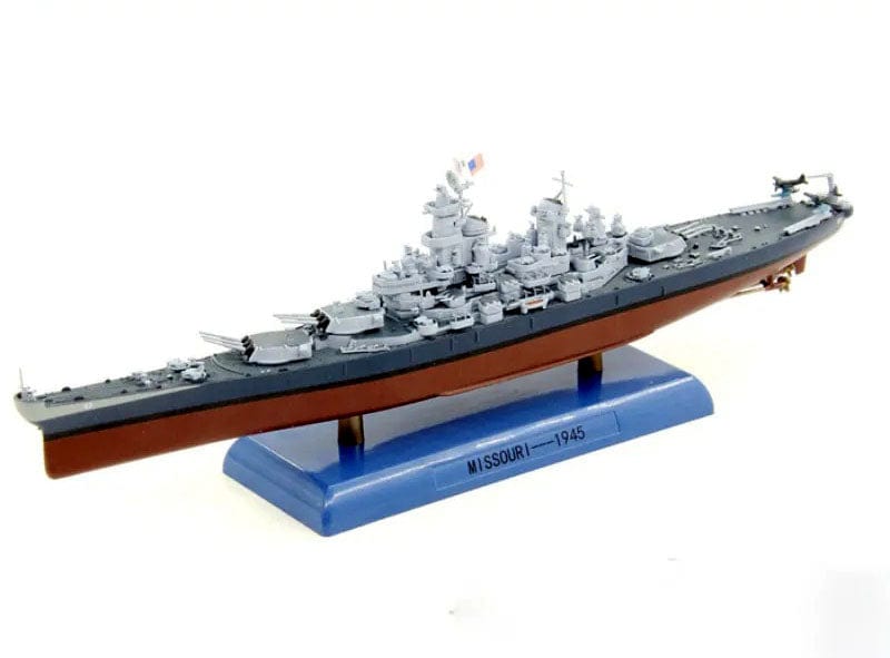 This 1/1000 scale diecast model of the WWII Battleship Missouri BB-63 is a collectible desk display. The display is complete with accurate details and a clear display assembly. Perfect for any military enthusiast, this model is a high-quality representation of the original WWII battleship.
