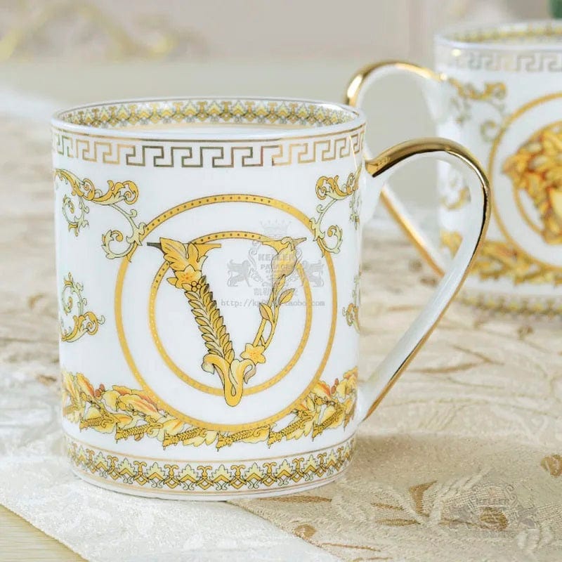 Versace Style Luxury Classic Coffee and Tea Ceramic 24 karat Gold Plated Mugs