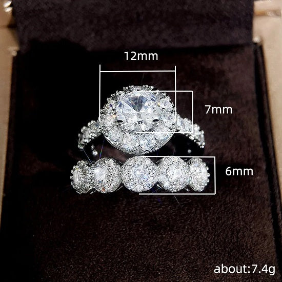 Vintage Lab Diamond Ring Sets 925 Sterling Silver 18 karat White Gold Plated Engagement Wedding Rings For Women