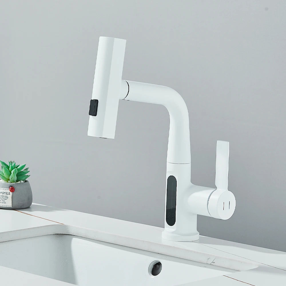 Intelligent Waterfall Basin Faucet with Temperature Digital Display Lift Up Crane Pull Out Faucet
