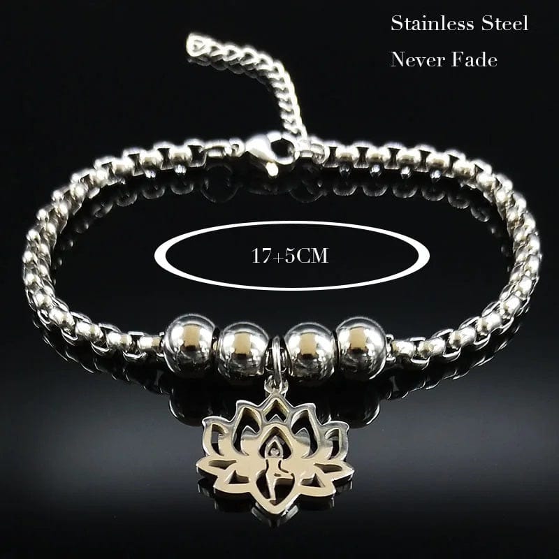 This Yoga Lotus set is crafted with stainless steel, featuring a double layer necklace, pendant bracelet, and earrings. Designed for women, it promotes good health and great fortune. Elevate your style while embracing positive energy with this unique and meaningful accessory.